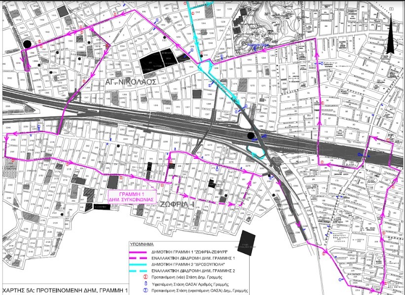 Η Δημοτική Συγκοινωνία περιλαμβάνει δύο νέες λεωφορειακές γραμμές, τη Γραμμή 1 «ΖΩΦΡΙΑ ΑΓ. ΝΙΚΟΛΑΟΣ-ΖΕΦΥΡΙ» και τη Γραμμή 2 «ΚΕΝΤΡΟ-ΔΡΟΣΟΥΠΟΛΗ-ΛΙΜΝΗ», οι οποίες και θα λειτουργούν παράλληλα με τις υπάρχουσες λεωφορειακές γραμμές. Βασίζεται σε ειδική μελέτη που συντάχθηκε στο τέλος του 2017, αφού έλαβε υπόψη την υφιστάμενη κατάσταση αλλά και τις προτάσεις της διοίκησης του Δήμου και των δημοτών. Για το σκοπό αυτό είχε διανεμηθεί ειδικό ερωτηματολόγιο το οποίο είχε αναρτηθεί στις ιστοσελίδες του Δήμου και των τοπικών Μέσων Μαζικής Ενημέρωσης.