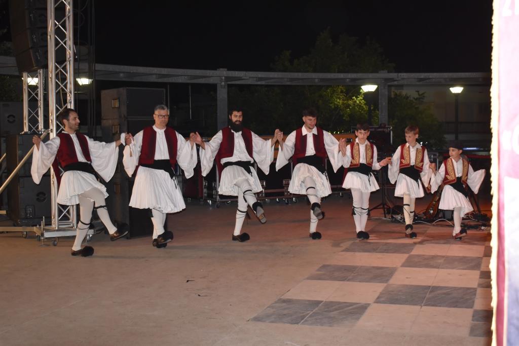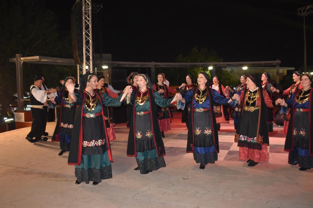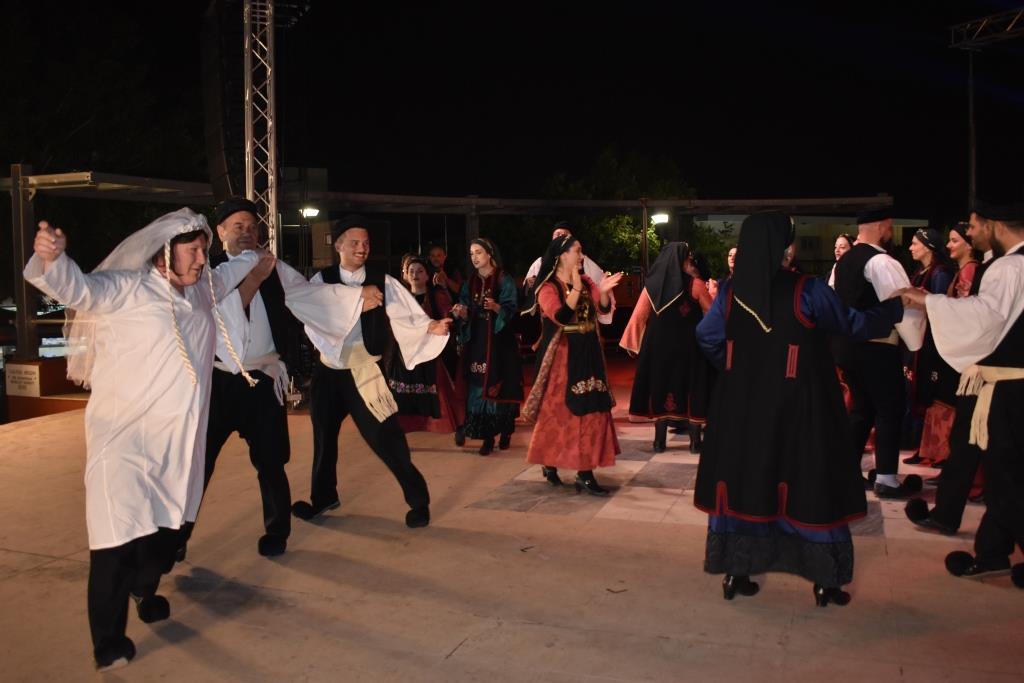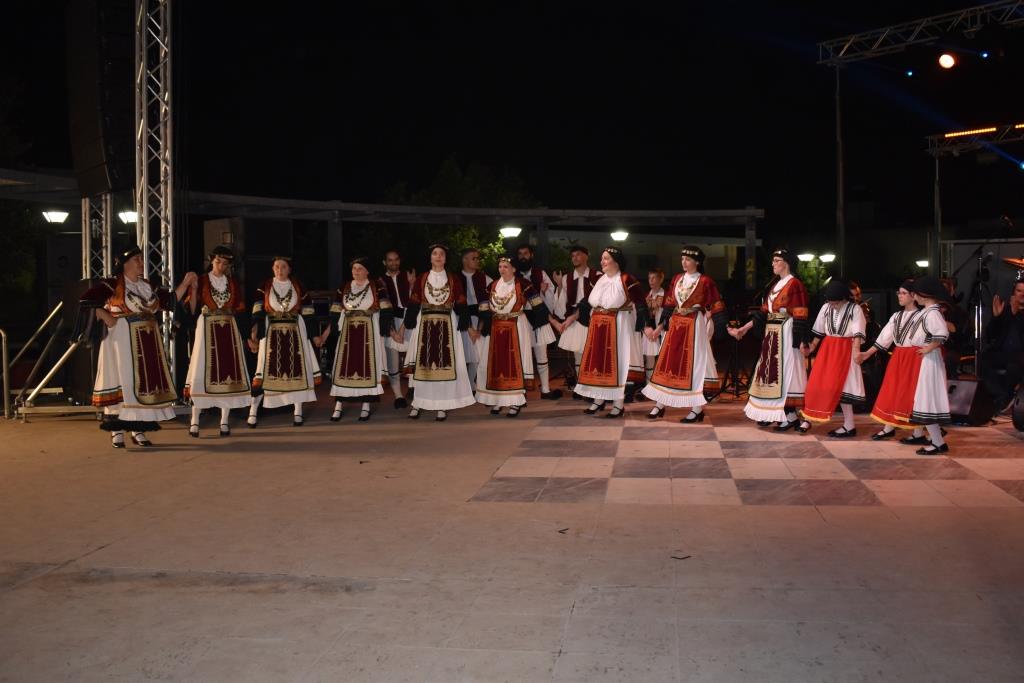Τα χορευτικά τμήματα πέντε Πολιτιστικών Συλλόγων του Δήμου έδωσαν δυναμικό παρών και ταξίδεψαν το κοινό σε αγαπημένες ιδιαίτερες πατρίδες ανά την Ελλάδα υπό τη φωνή του Κώστα Μήτση και τους ήχους της ορχήστρας του. Με τις εντυπωσιακές φορεσιές τους, τα χορευτικά των Συλλόγων παρουσίασαν χαρακτηριστικούς χορούς των περιοχών τους και οδήγησαν το κοινό σε ένα ταξίδι παράδοσης, μνήμης και νοσταλγίας για αγαπημένους τόπους.