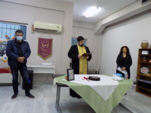 Την πίτα ευλόγησε ο πατέρας Φανούριος ο οποίος ευχήθηκε υγεία, προκοπή και ανθεκτικότητα στις δυσκολίες της ζωής.