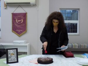 Ο Δήμαρχος Φυλής Χρήστος Παππούς αφού ευχήθηκε χρόνια πολλά με υγεία ευχήθηκε “σύντομα να αφήσουμε πίσω την πανδημία και να μπορέσουμε να ξαναβρεθούμε όλοι μαζί σε μεγαλύτερες εκδηλώσεις” ενώ προσέφερε το κομμάτι που έκοψε στον υπεύθυνο του χορευτικού Νίκο Χαραμή.