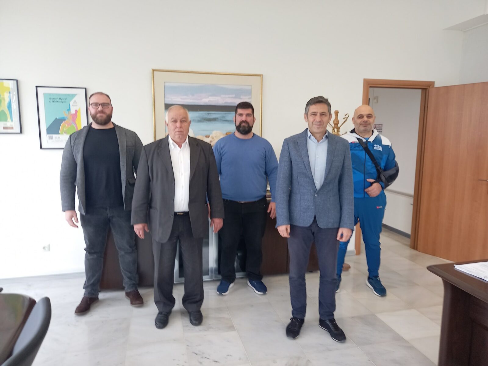 Ο Κοσμήτορας της σχολής Γιώργος Τζέτζης υποδέχτηκε στην Κοσμητεία της ΣΕΦΑΑ ΑΠΘ στη Θέρμη, τον πρόεδρο της Ελληνικής Ομοσπονδίας Πάλης Στέργιο Λεωνάκη, τον αναπληρωτή έφορο της ΕΛΟΠ και γενικό γραμματέα της τεχνικής επιτροπής Σωκρατη Λιάκο , το μέλος του Δ.Σ. ΕΛΟΠ Γιάννη Αρζουμανίδη και τον εθνικό προπονητή Γιάννη Παγκαλίδη.
