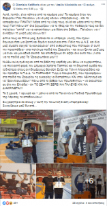 Συγκινημένος από την εξαιρετική παρουσία των αθλητών του, ο προπονητής τους Διονύσης Κατηφόρης ανάρτησε στην προσωπική του σελίδα στα μέσα κοινωνικής δικτύωσης: