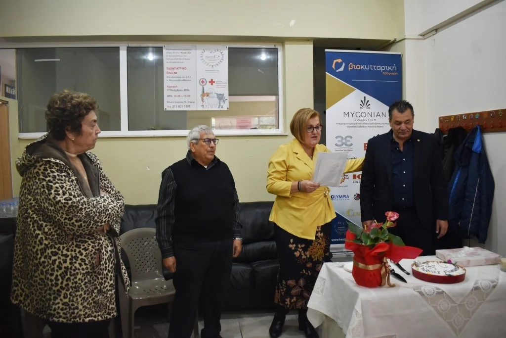 Η Πρόεδρος του Συλλόγου Τζένη Μπάρα, κατά τον σύντομο χαιρετισμό της έκανε έναν απολογισμό για το πολύτιμο έργο και τις δράσεις του Συλλόγου κι ευχαρίστησε θερμά τον Δήμαρχο για την ολόπλευρη στήριξή του. Όπως χαρακτηριστικά τόνισε, η Δημοτική Αρχή έχει προσφέρει στον Σύλλογο τον χώρο που στεγάζεται και είναι στο πλευρό του σε κάθε αίτημα. Για αυτόν ακριβώς το λόγο πρόσφερε στον Δήμαρχο ένα αναμνηστικό – συμβολικό δώρο.