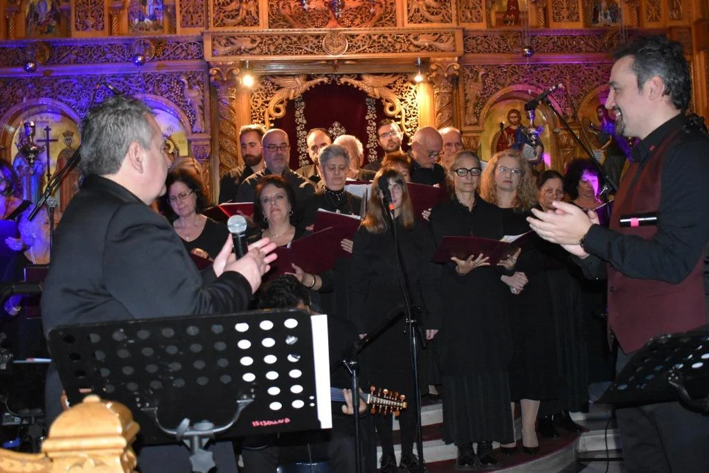 Ύμνους στην Παναγία, τα κάλαντα του Χριστού και άλλες θρησκευτικές μελωδίες ερμήνευσε ο πρωτοψάλτης Γρηγόρης Κακούρης ενώ για πρώτη φορά η χορωδία “Εν Ωδαίς” από τον προσφυγικό Βύρωνα έψαλλε δυο ύμνους με γυναικείες φωνές κάτι που ακόμα δεν είναι ιδιαίτερα συνηθισμένο στη χώρα μας.