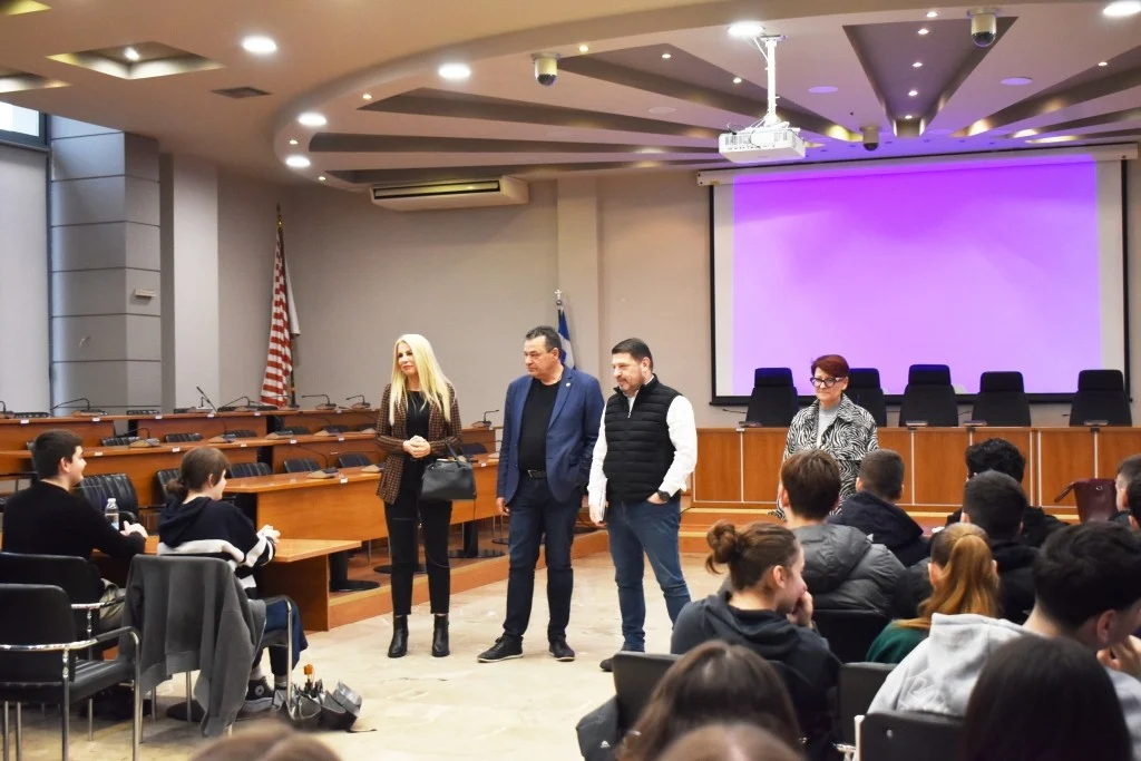 Εγκάρδια συνάντηση με μαθητές και καθηγητές του 1ου Γενικού Λυκείου Άνω Λιοσίων είχαν ο Περιφερειάρχης Αττικής Νίκος Χαρδαλιάς και ο Δήμαρχος Φυλής Χρήστος Παππούς το πρωί της Πέμπτης 29 Ιανουαρίου 2026.