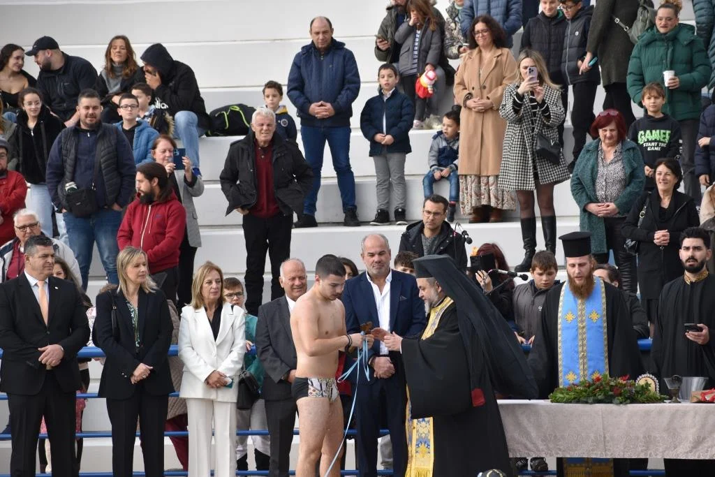 Το μυστήριο ολοκληρώθηκε με την κατάδυση του Τιμίου Σταυρού που έγινε με μεγαλοπρέπεια στο Δημοτικό Κολυμβητήριο Άνω Λιοσίων παρουσία του Δημάρχου Φυλής Χρήστου Παππού, Αντιδημάρχων, μελών του Δημοτικού και Τοπικού Συμβουλίου, εκπροσώπων συλλόγων και φορέων καθώς και αθλητών και αθλητριών κολυμβητικών συλλόγων που βούτηξαν στην πισίνα και ανταγωνίστηκαν για να πιάσουν το Σταυρό και να λάβουν ευλογία για τη νέα χρονιά.