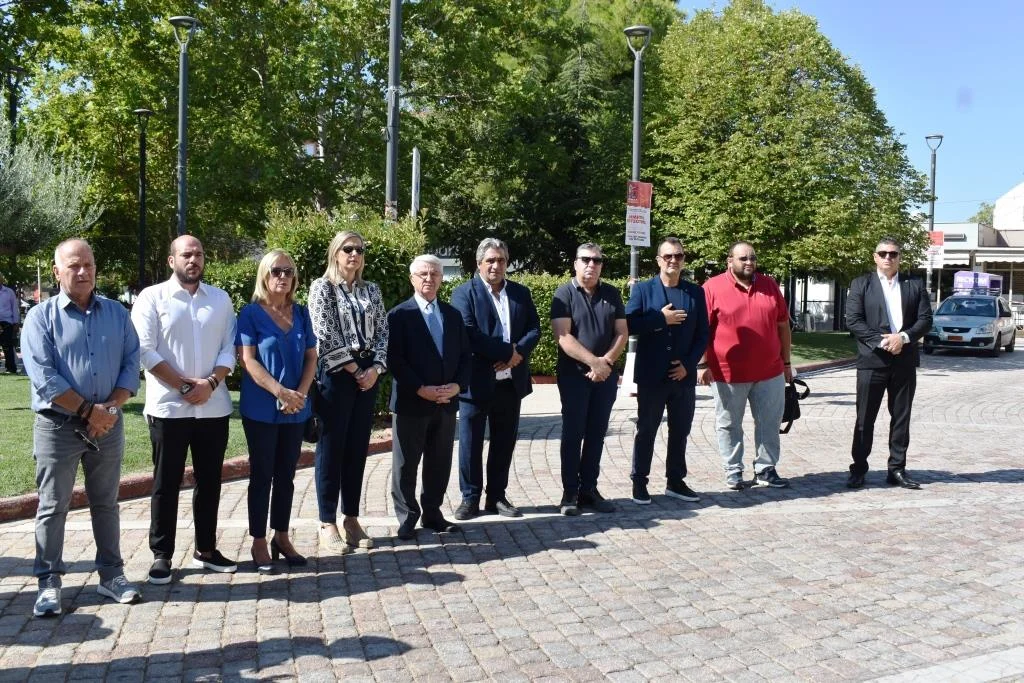 Εν συνεχεία, στο μνημείο μπροστά στο Δημαρχείο Άνω Λιοσίων, τελέστηκε επιμνημόσυνη δέηση και κατατέθηκε στεφάνι από τον Πρόεδρο του Δημοτικού Συμβουλίου Γεώργιο Αντωνόπουλο, λόγω κωλύματος του Δημάρχου Χρήστου Παππού. Τιμές απέδωσε η Φιλαρμονική του Δήμου Φυλής.