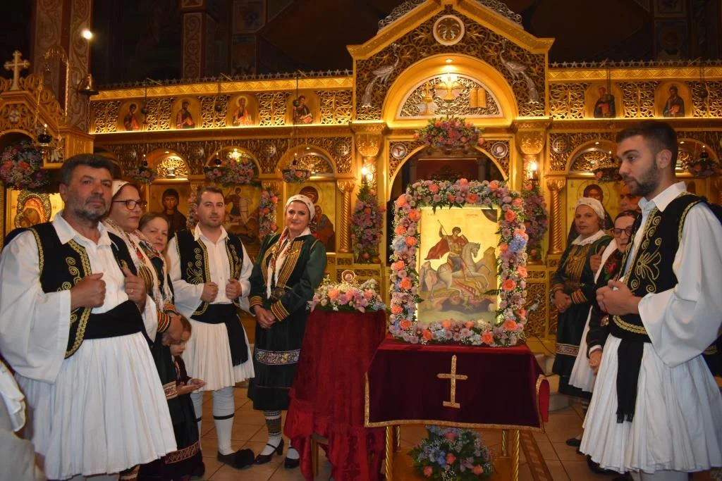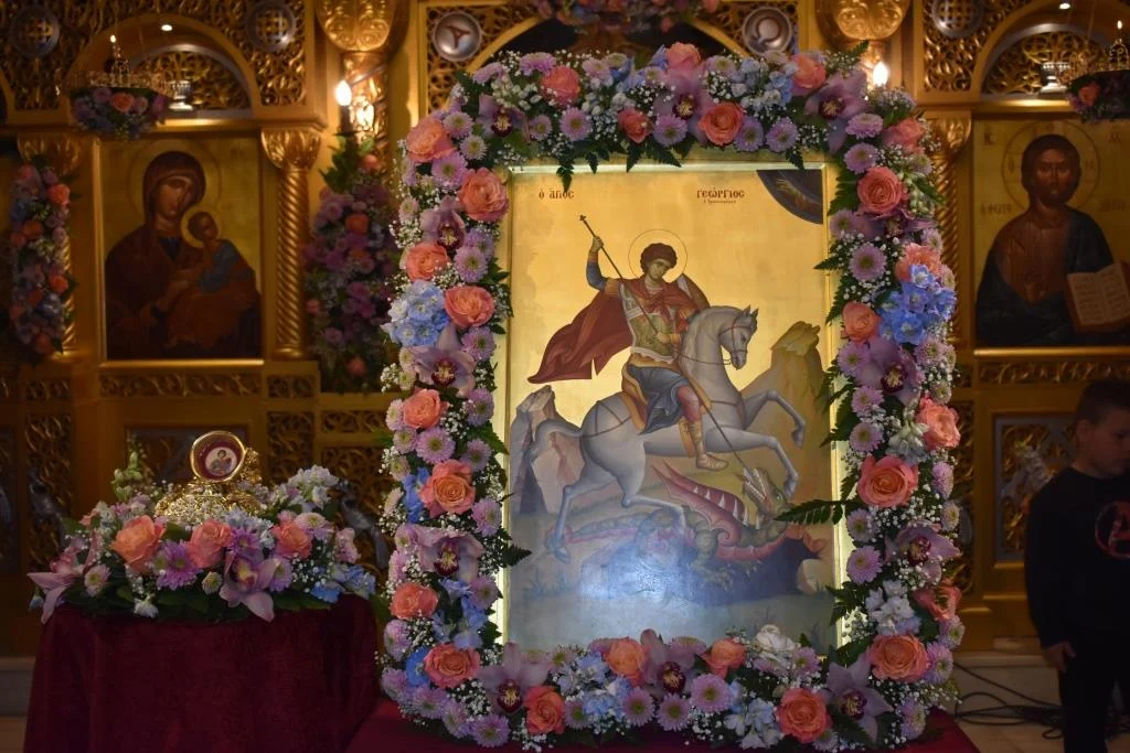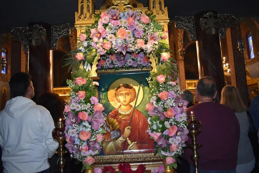 Οι εορταστικές εκδηλώσεις ολοκληρώνονται σήμερα στις 7 το απόγευμα με την Ιερά Παράκληση του Αγίου Γεωργίου ενώ το πρωί εψάλη Πανηγυρική Θεία Λειτουργία μετ΄ Αρτοκλασίας και Θείου Κυρήγματος.