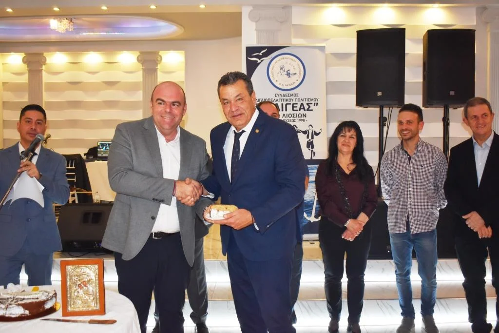 Τις θερμές του ευχές για μια καλή χρονιά στην επιτυχημένη εκδήλωση για την κοπή της Βασιλόπιτας του Συνδέσμου Αιγαιοπελαγίτικου Πολιτισμού “ο Αιγέας”, που πραγματοποιήθηκε το βράδυ του Σαββάτου 7 Φεβρουαρίου 2026, σε αίθουσα ψυχαγωγίας της Λεωφόρου Πάρνηθος, έδωσε ο Δήμαρχος Φυλής Χρήστος Παππούς.