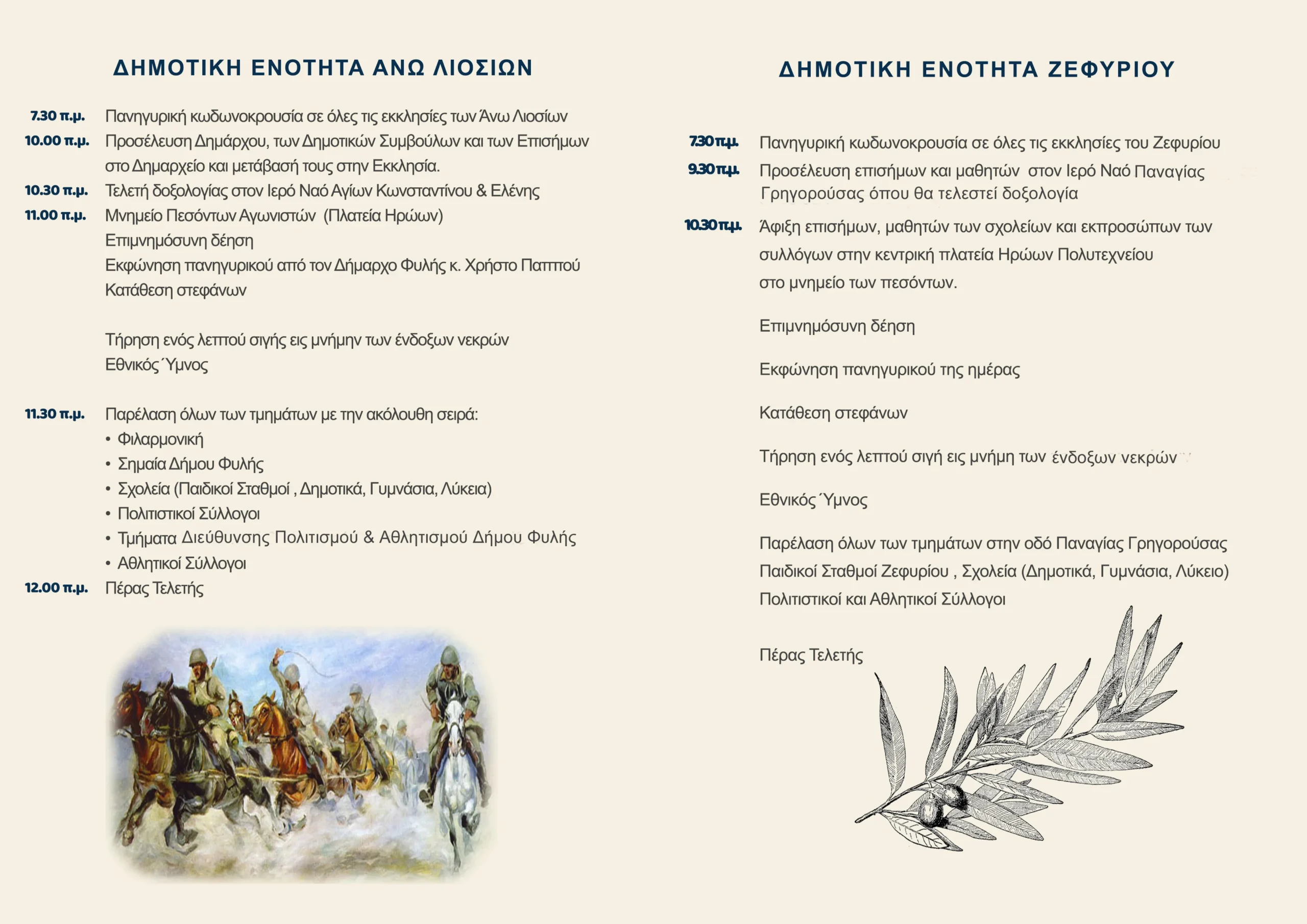 Το πρόγραμμα του εορτασμού της 28ης Οκτωβρίου 2025 στον Δήμο Φυλής