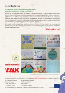 «Ενώνουμε, λοιπόν, τις φωνές με χιλιάδες νέους και νέες από όλη την Ευρώπη και τον κόσμο και διατρανώναμε το μήνυμα της άμεσης δράσης για την καταπολέμηση της κλιματικής αλλαγής. Μόνο όλοι μαζί θα τα καταφέρουμε! Walk with us!».